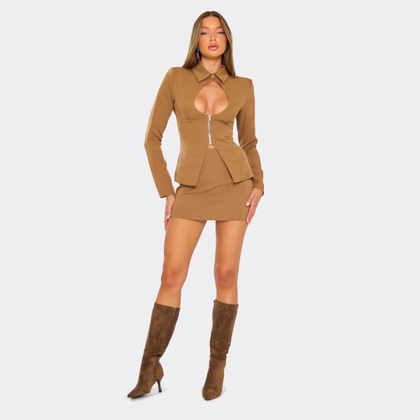 The EGO Camel Brown Tailored Mini Skirt in Camel Brown is ideal for casual, concert.