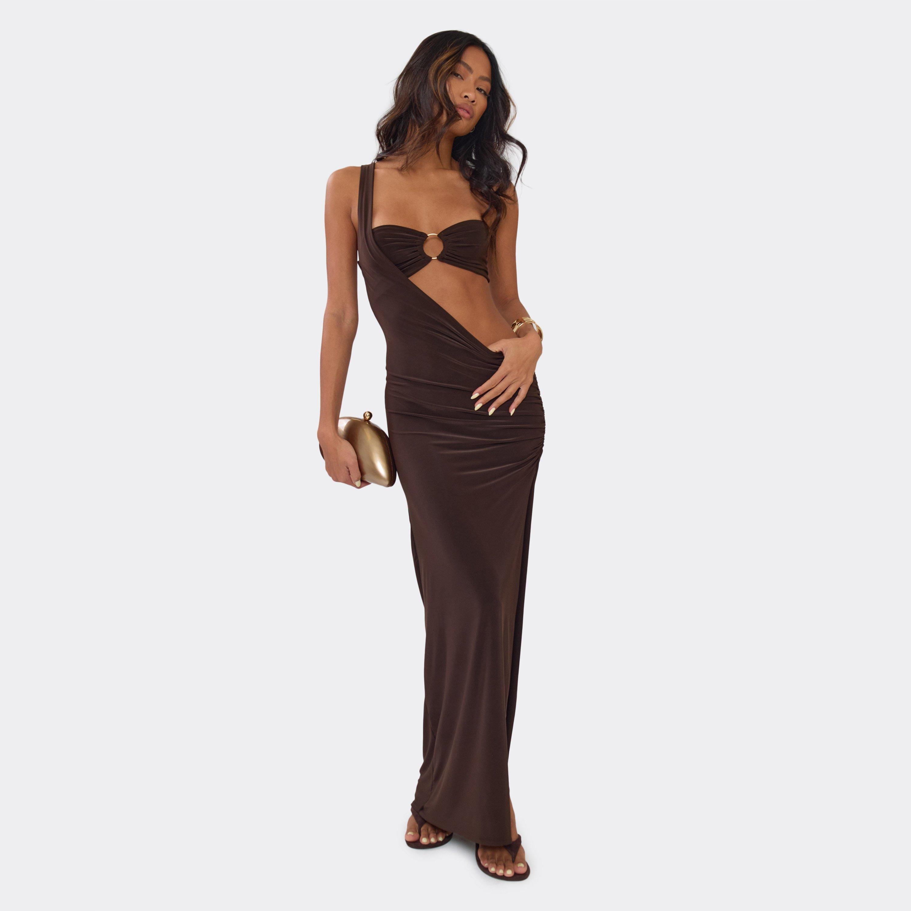 The EGO Chocolate Brown One Shoulder Split Leg Maxi Dress is ideal for evening, formal.