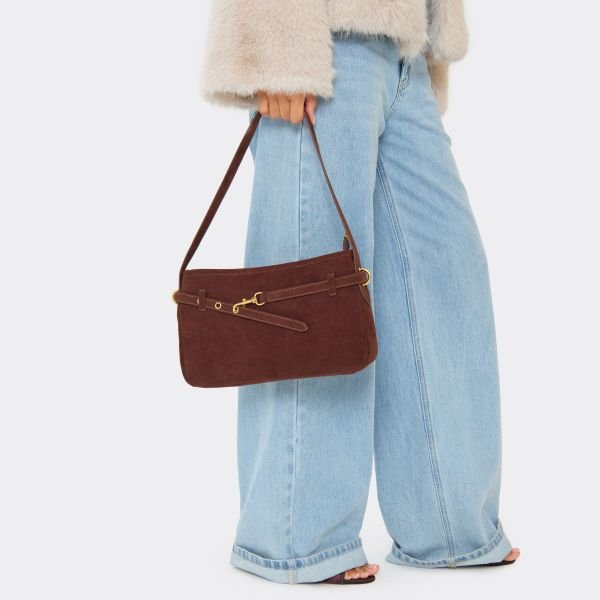The EGO Belt Trim Detail Shoulder Bag in Brown Faux Suede is ideal for casual.