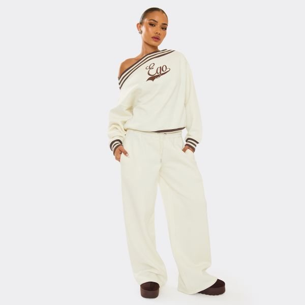 The EGO Drawstring Tie Waist Straight Leg Joggers in Cream is ideal for casual, weekend, lounge.