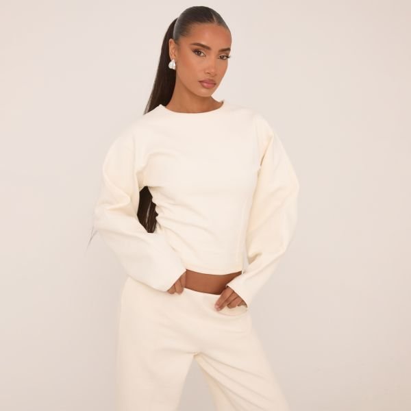 The EGO Chic Long Balloon Sleeve Seam Detail Sweatshirt in Cream is ideal for casual.