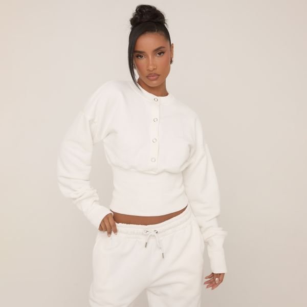 Stay cosy and chic, babe! This long sleeve popper detail cinched waist sweatshirt in cream is the perfect mix of comfy and stylish. Ideal for casual days when you want to look cute but still feel snuggled up.