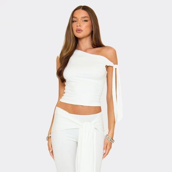The EGO Off Shoulder Tie Sleeve Detail Top in Cream is ideal for weekend, casual.