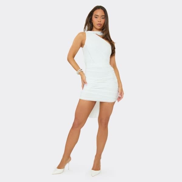 The EGO One Shoulder Drape Mini Dress In Cream is ideal for date-night, evening, party.