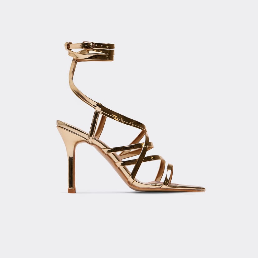 The EGO Gold Patent Strappy Square Toe Heel, Women's Size UK 3 is available in sizes 3, 4, 5, 6, 7, 8, 9.