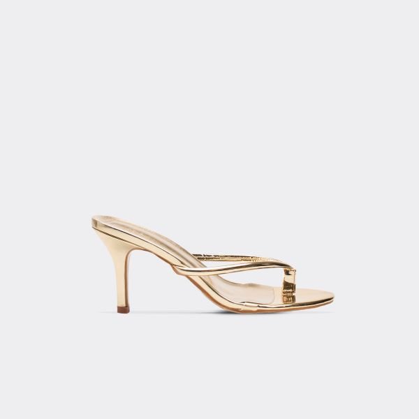 The EGO Gold Thong Strap Heeled Mule is ideal for evening, party.