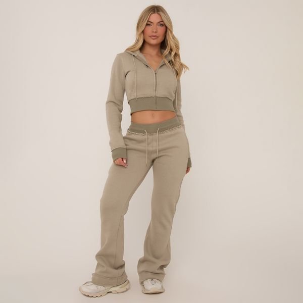 The EGO Contrast Distressed Detail Flared Joggers in Washed Green is ideal for lounge, casual.