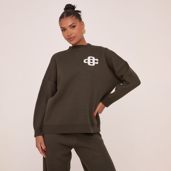 Wrap yourself in ultimate comfort with this high neck, oversized dark khaki green knit sweatshirt. The bold contrast swirl detail gives this sweatshirt a chic and stylish fit. Ideal for relaxed, casual days.