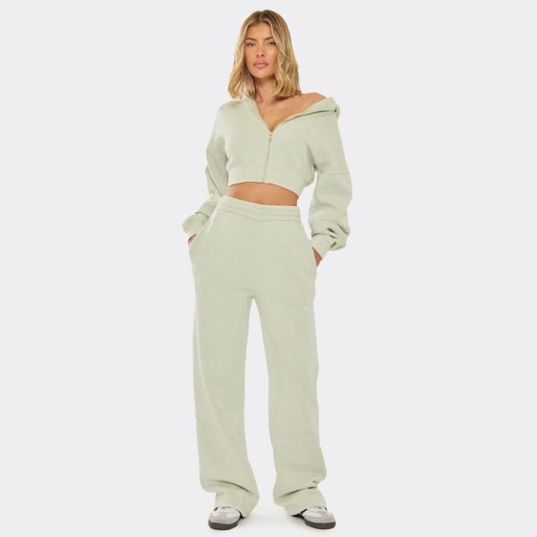 Designed for relaxed comfort, these washed sage green high-waist oversized wide-leg joggers are perfect for your Sunday mornings. Crafted in a dreamy sage tone, they offer a flattering high-rise and wide-leg for the perfect fit. Ideal for low-key looks, pair them with the matching sage green cropped hoodie and fresh trainers.