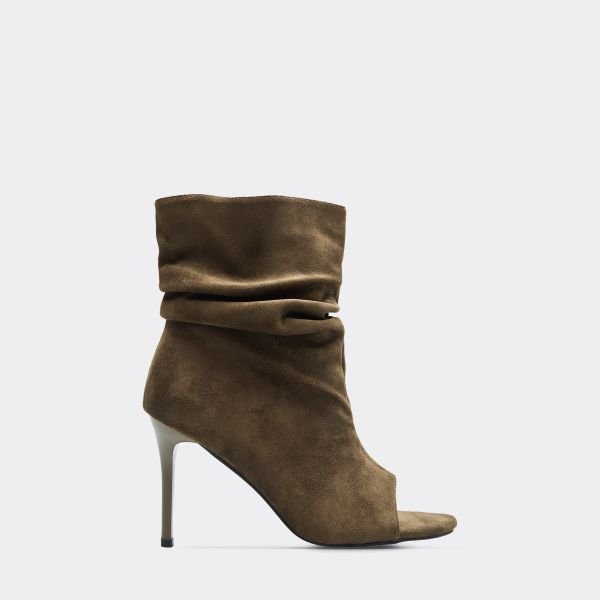 The EGO Green Synthetic Heeled Boot is available in sizes 3, 4, 5, 6, 7.