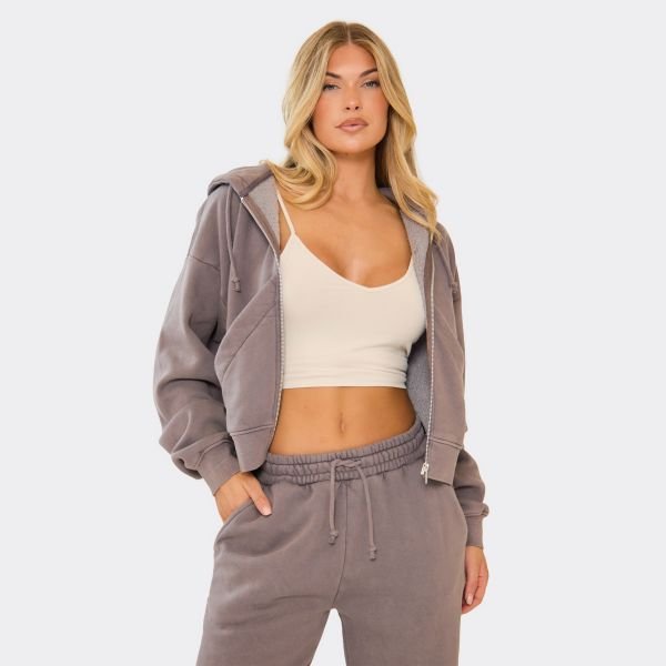 Pair with matching washed charcoal wide leg joggers for a cohesive loungewear look.