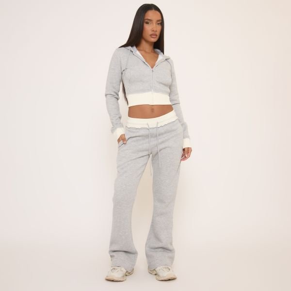 The EGO Contrast Distressed Detail Flared Joggers in Light Grey is ideal for casual, weekend.