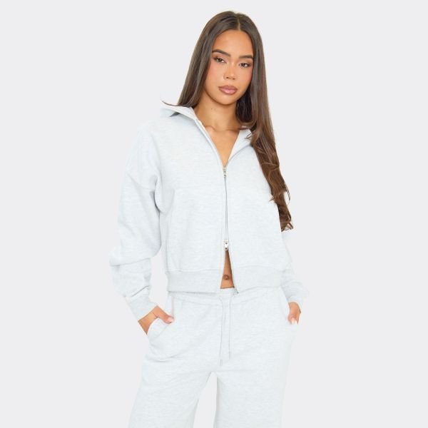 Crafted with comfort in mind, this boxy hoodie in grey offers a relaxed fit. The double zip-up design ensures a snug, warm fit, perfect for lounging or casual outings.