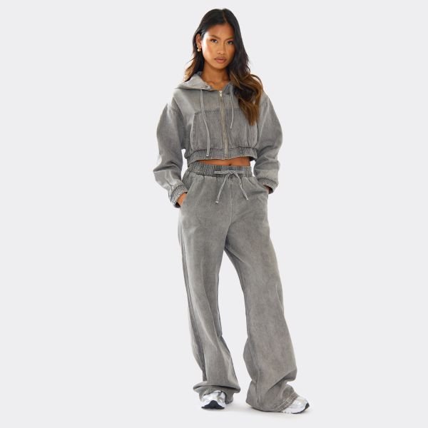 Crafted from washed grey denim, these joggers feature a drawstring waist for a laid-back, off-duty look. Ideal for casual wear, they offer a street-ready edge.
