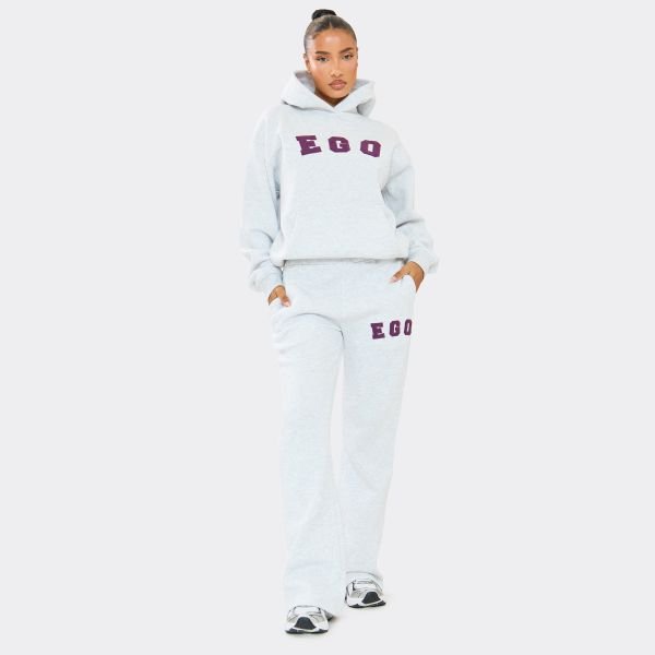 Elevate your loungewear with our high waist, flared leg grey joggers in soft borg fabric. Featuring bold EGO graphic slogan detailing, these joggers are perfect for airport outfits that don't compromise on style. Ideal for casual airport outings or cozy weekend lounging.