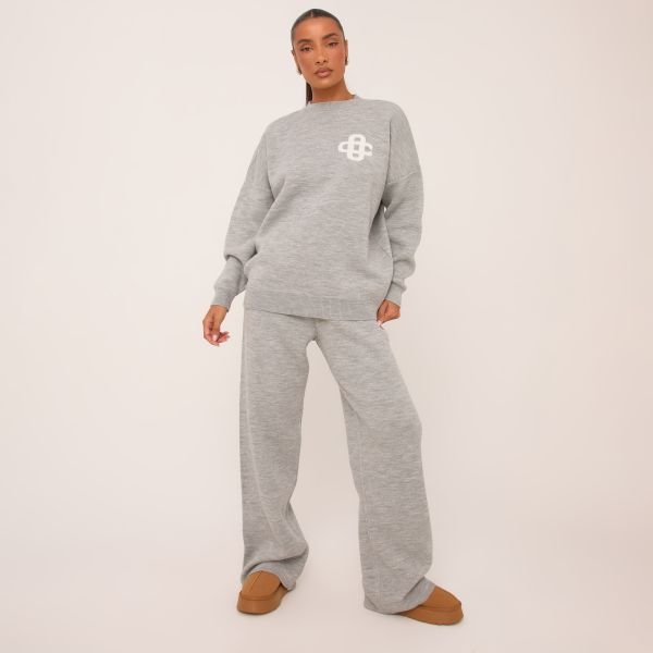 Dress for chill days with our grey marl knit high waist wide leg joggers featuring a contrast swirl logo. Perfect for lounging, these joggers offer a comfy and stylish look.