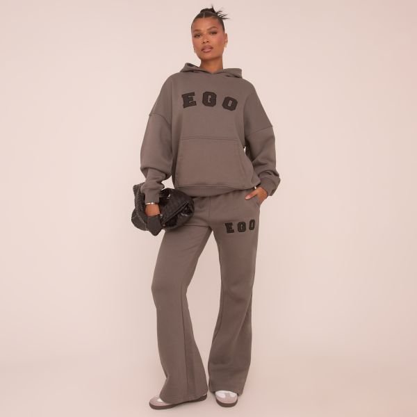 The EGO High Waist Graphic Slogan Flared Leg Joggers in Grey is ideal for casual, lounge.