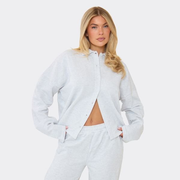 This light grey marl long sleeve shirt features a collar detail, making it a versatile addition to any wardrobe. Perfect for casual outings or layering under a blazer for a smart-casual look.