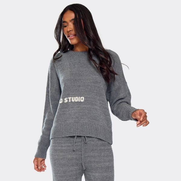 Cozy up in style with this charcoal grey knit jumper, featuring long sleeves and oversized detailing for a relaxed, chic vibe.