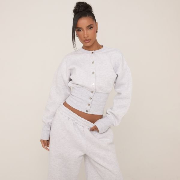 Meet your new go-to: the grey popper detail sweatshirt with a cinched waist, bringing structure to your off-duty days. Perfect for an elevated off-duty vibe!