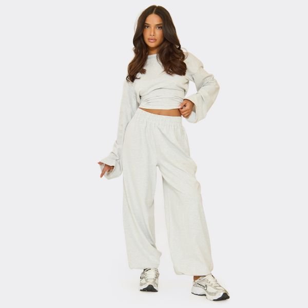 These low rise joggers are a total dream, doll. Featuring a light grey marl fabric with a dramatic balloon leg and elasticated waist, they bring a high-octane, oversized edge to your look. Style with a fitted crop top for a luxe-chill aesthetic.