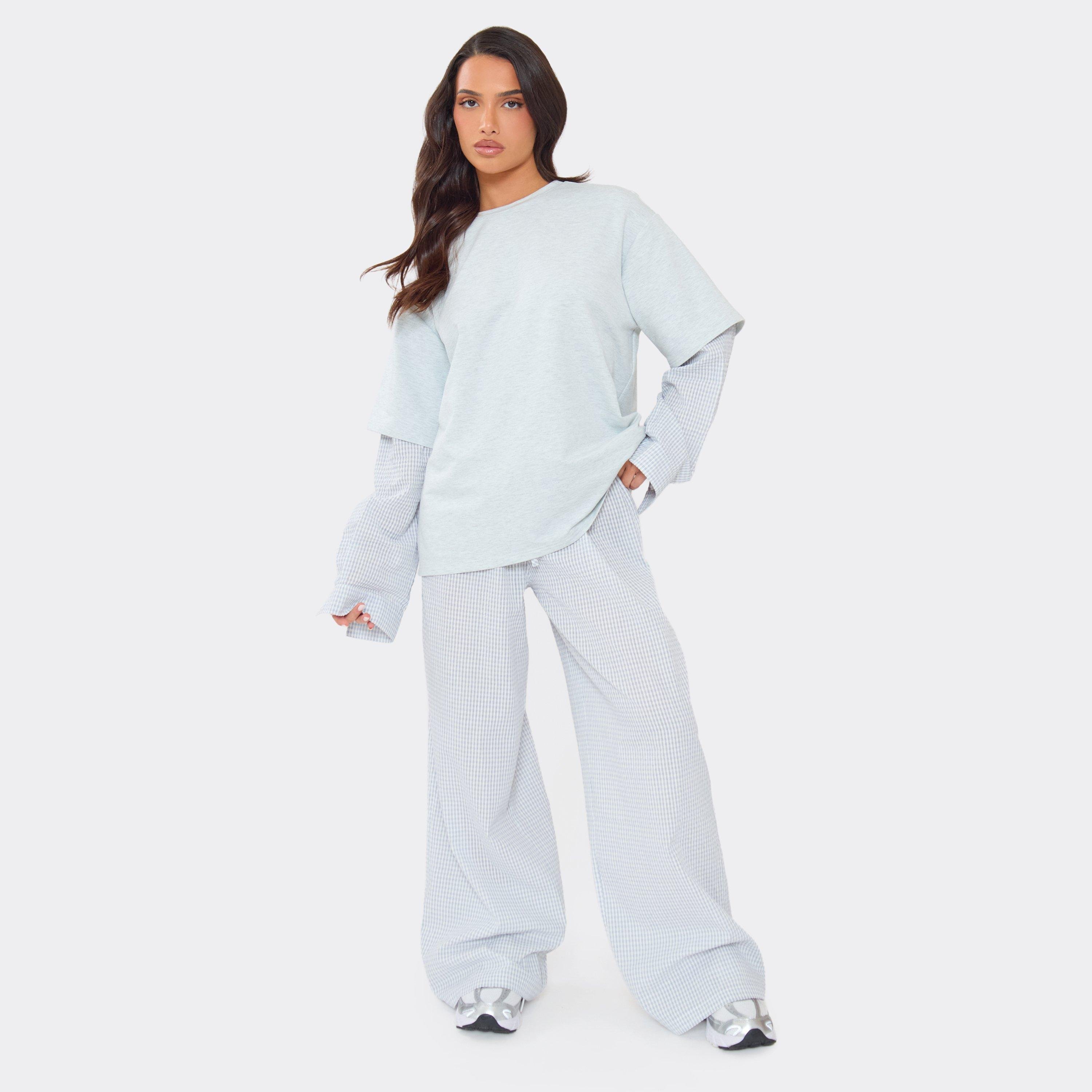 Nail those off-duty days in this absolute mood. Featuring grey checkered print material with mid rise tie waist and wide leg detailing, these trousers are a total win. Style with the matching top and fresh trainers for the ultimate cool-girl look.