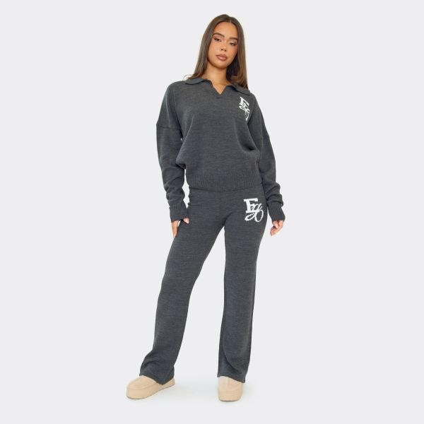 Designed for comfort-driven style, these dark grey knit trousers feature a flattering mid-rise waist and wide-leg silhouette finished with EGO graphic detailing. Ideal for effortless knitwear outfit ideas, they’re perfect for relaxed Christmas day outfit ideas when you still want to look put together.
