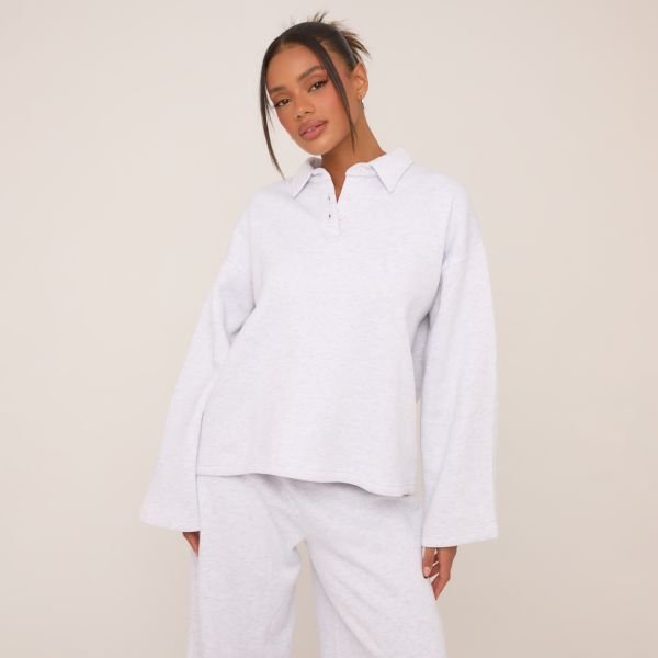 Designed with a polo collar and soft grey marl fabric, this sweatshirt provides a sporty touch to your casual look. Perfect for pairing with jeans or leggings for effortless style.