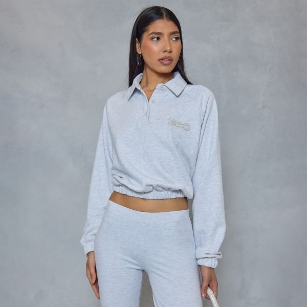 The EGO Oversized Polo Graphic Sweatshirt in Grey is ideal for casual.