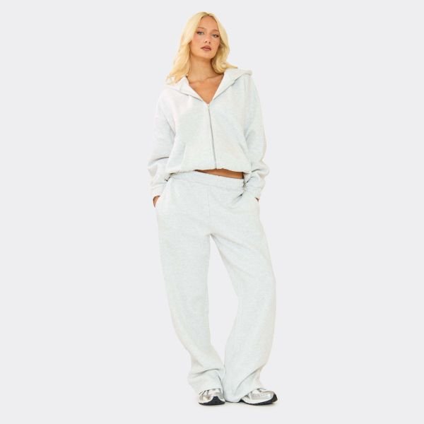 Designed for an effortless vibe, these light grey marl straight-leg joggers feature a mid-rise waist and are perfect for any occasion. Ideal for coffee runs and travel, they can be paired with a matching hoodie for a lounge look.