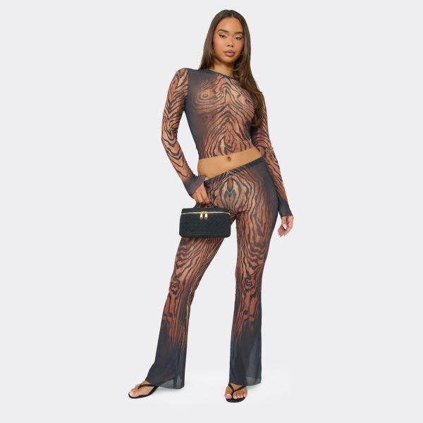 Multi-Print Long Sleeve Top And Flared Trouser Co-ord Set — the ultimate day-to-night outfit. Featuring a multi-print stretch material with a long-sleeve top and flared trouser. Perfect for heels or trainers for effortless, head-turning vibes.
