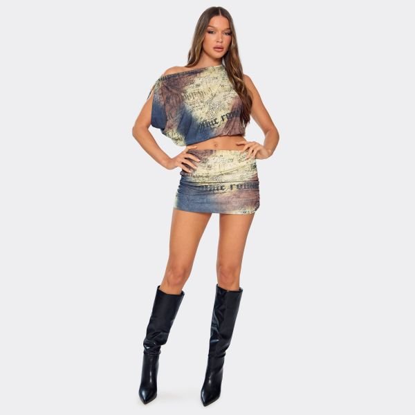The EGO Graphic Ruched Detail Mini Skirt in Multi is ideal for casual, party, date-night.