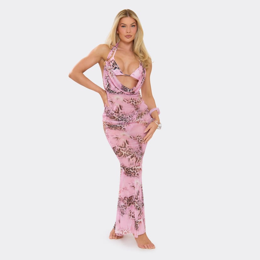 View EGO (UK)'s returns policyBeach-ready pink leopard print maxi dress with a cowl front and flattering maxi length. Perfect for holiday styling with gold accessories and wedges.