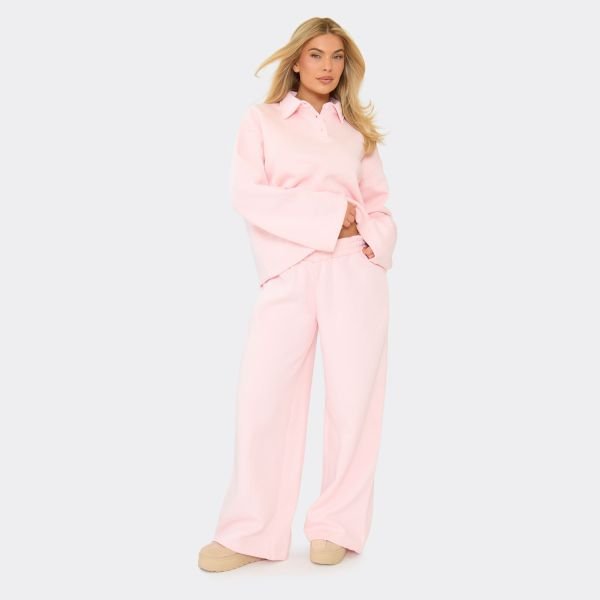 Pair with a matching baby pink polo collar sweatshirt for a cohesive lounge look.