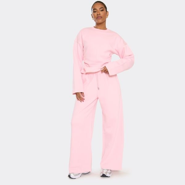 The EGO Pink Drawstring Waist Wide Leg Joggers in Pink is ideal for casual, loungewear.