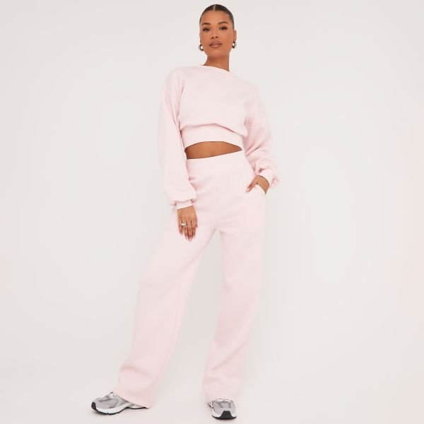Crafted with a baby pink material, these joggers offer an elasticated waist and a wide leg fit. Perfect for casual wear.