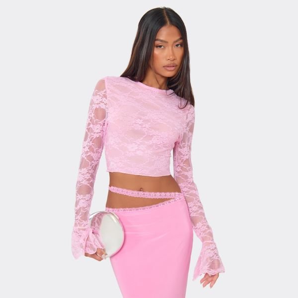 The EGO Pink Flared Long Sleeve Top with Lace is ideal for casual.