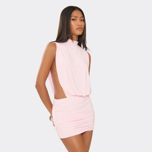 The EGO High Neck Open Side Mini Dress in Baby Pink is ideal for evening, party.