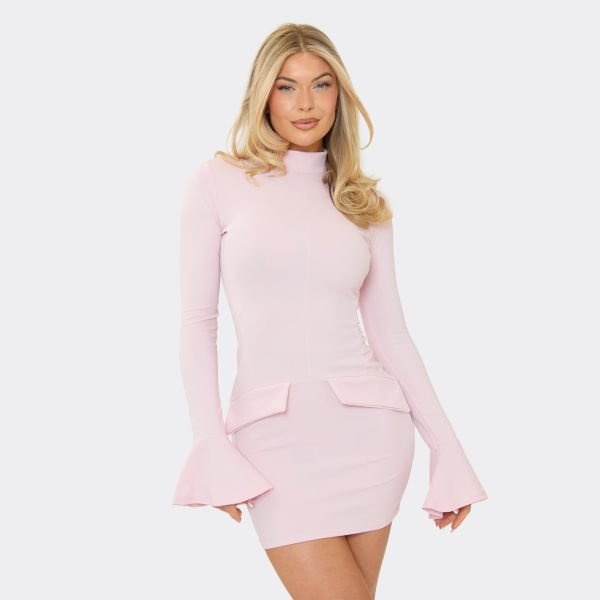 The EGO Pink Woven Long Sleeve High Neck Tailored Mini Dress is ideal for casual, evening, party.
