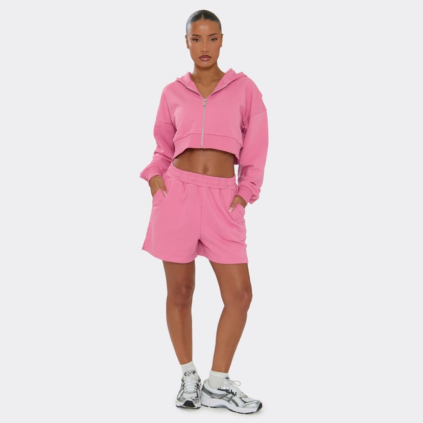 See all outfit ideasUpgrade your off-duty look with these hot pink sweat shorts. Featuring a low rise fit and split leg detailing, these shorts are perfect for a casual summer vibe. Pair with a matching crop top and fresh kicks for a trendy ensemble.