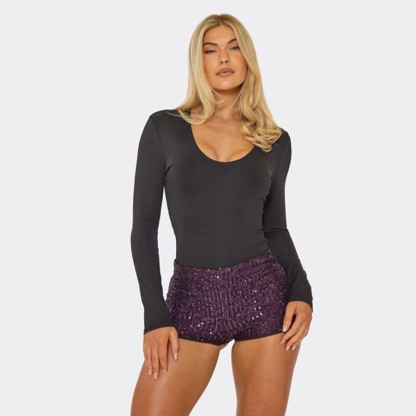 The EGO Purple Sequin Mid Rise Shorts with Mid-Rise Waist is ideal for party, evening, night out.