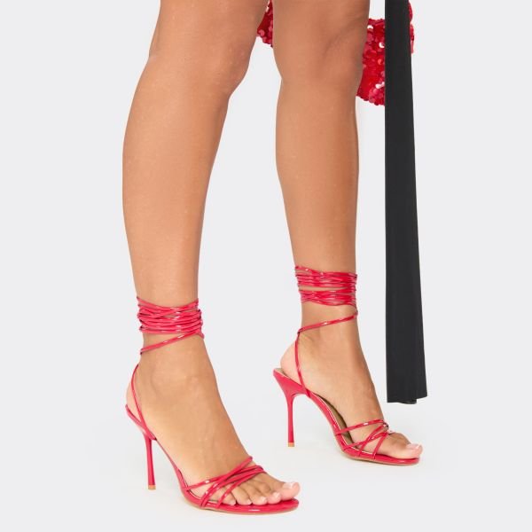 The EGO Strappy Lace-Up Stiletto Heel in Red Faux Leather is ideal for evening, night-out.