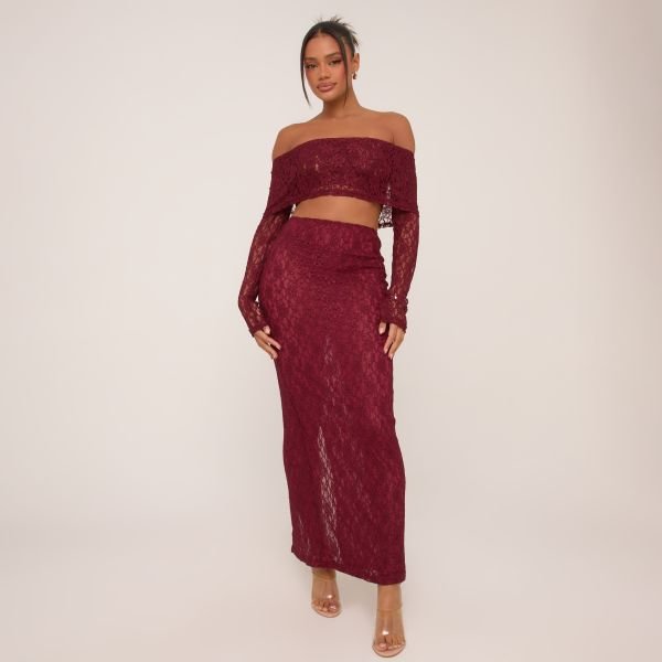 The EGO Sultry Burgundy Lace Maxi Skirt with Flowy Fit is ideal for evening, party, date-night.
