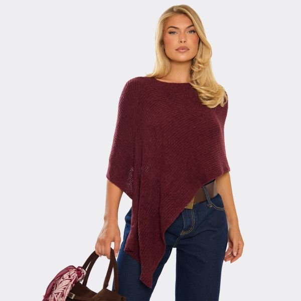 Elevate your style with an off-the-shoulder cape detail top. Crafted in a rich burgundy colour, this top features a textured knit and chic cape silhouette. The off-the-shoulder neckline adds a modern twist, giving your knitwear day-to-night potential.