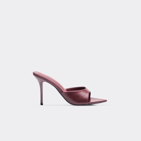 The EGO Burgundy Faux Leather Stiletto Mule in Red is available in sizes 3, 4, 5, 6, 7, 8.