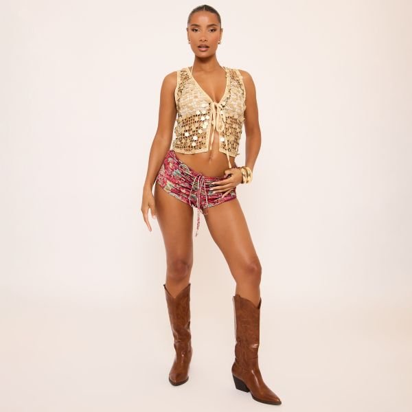 The EGO Playful Red Paisley Print Tie Waist Shorts in UK Size 6 is ideal for beach, casual.
