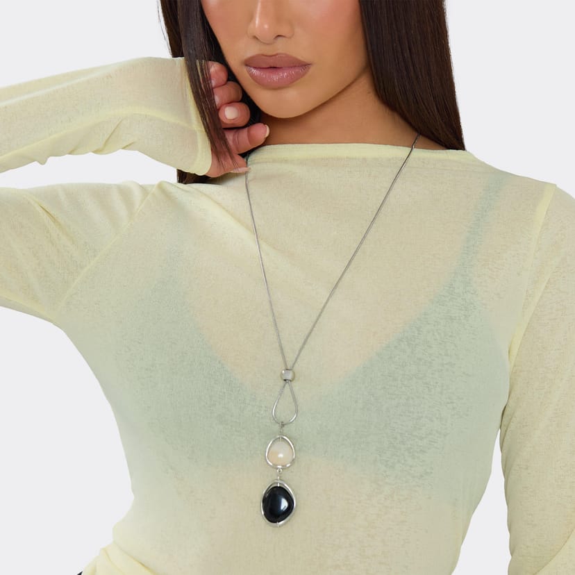 Elegant EGO Contrast Stone Pendant Necklace in silver metal with a black and white stone pendant. Perfect for adding a touch of sophistication to any outfit. Ideal for evening events or casual daywear.