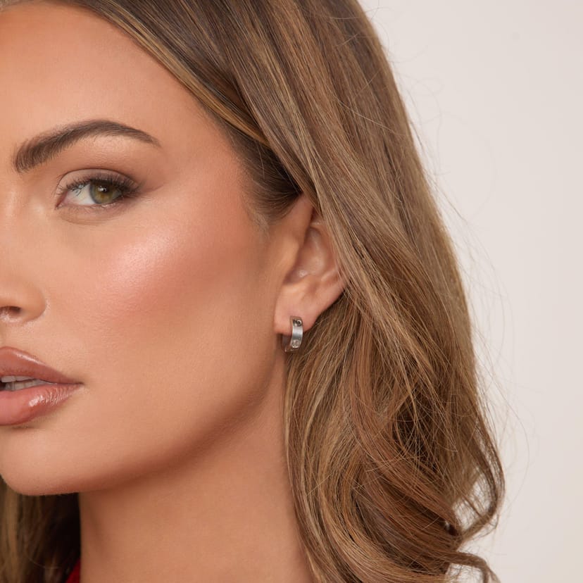 The EGO Silver Logo Detail Mini Hoop Earrings is ideal for night out, casual, evening.