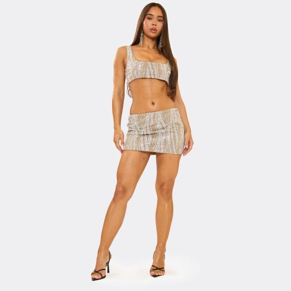 The EGO Silver Embellished Mini Skirt in Silver is available in sizes C06, C08, C10, C12, C14.