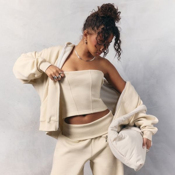 Designed with a bandeau neckline and flattering seam detailing, this cream crop top creates a sculpted, on-trend look that's made to stand out. The cropped length keeps things playful, while the soft fabric adds a laid-back, comfy vibe.